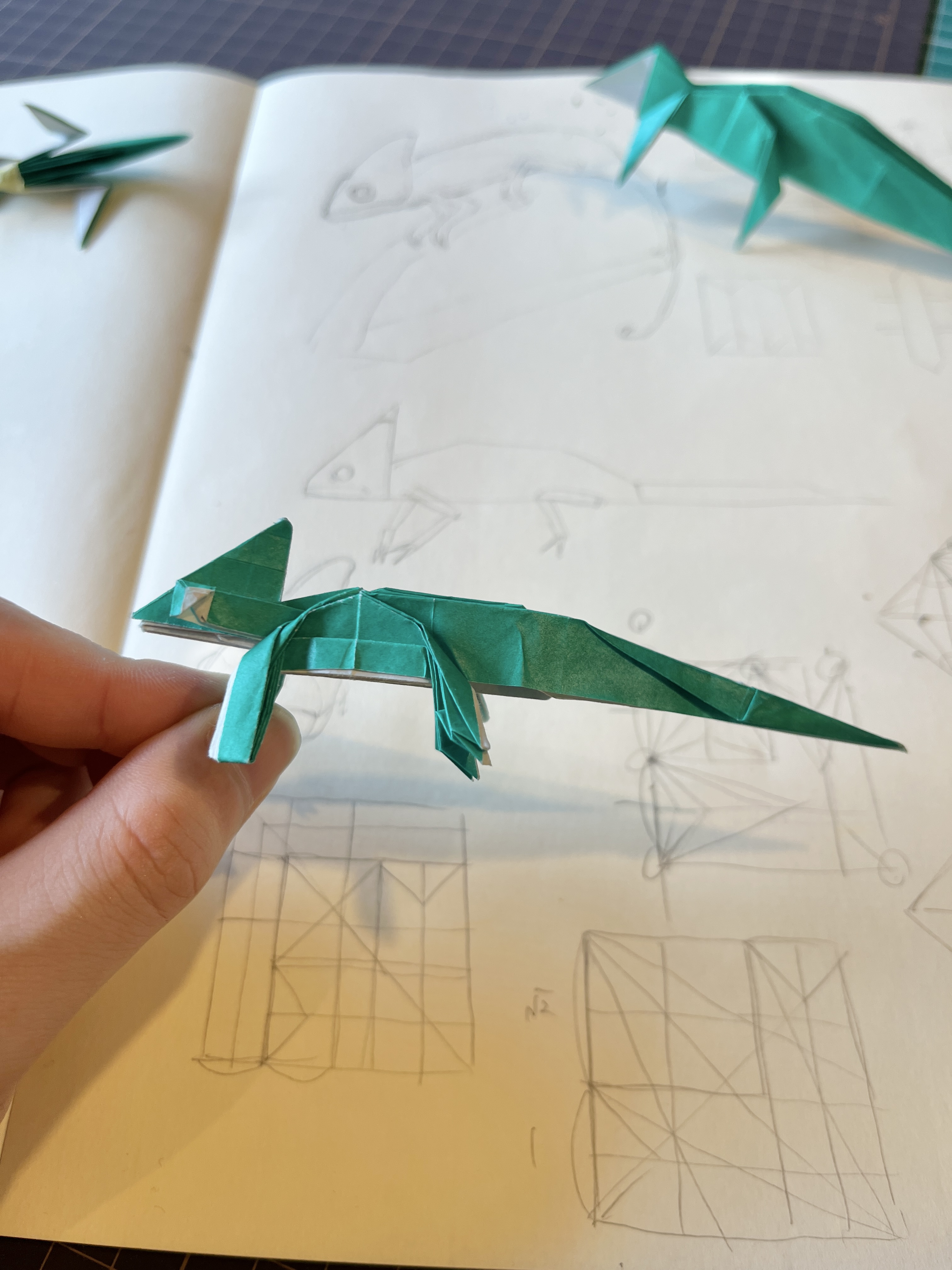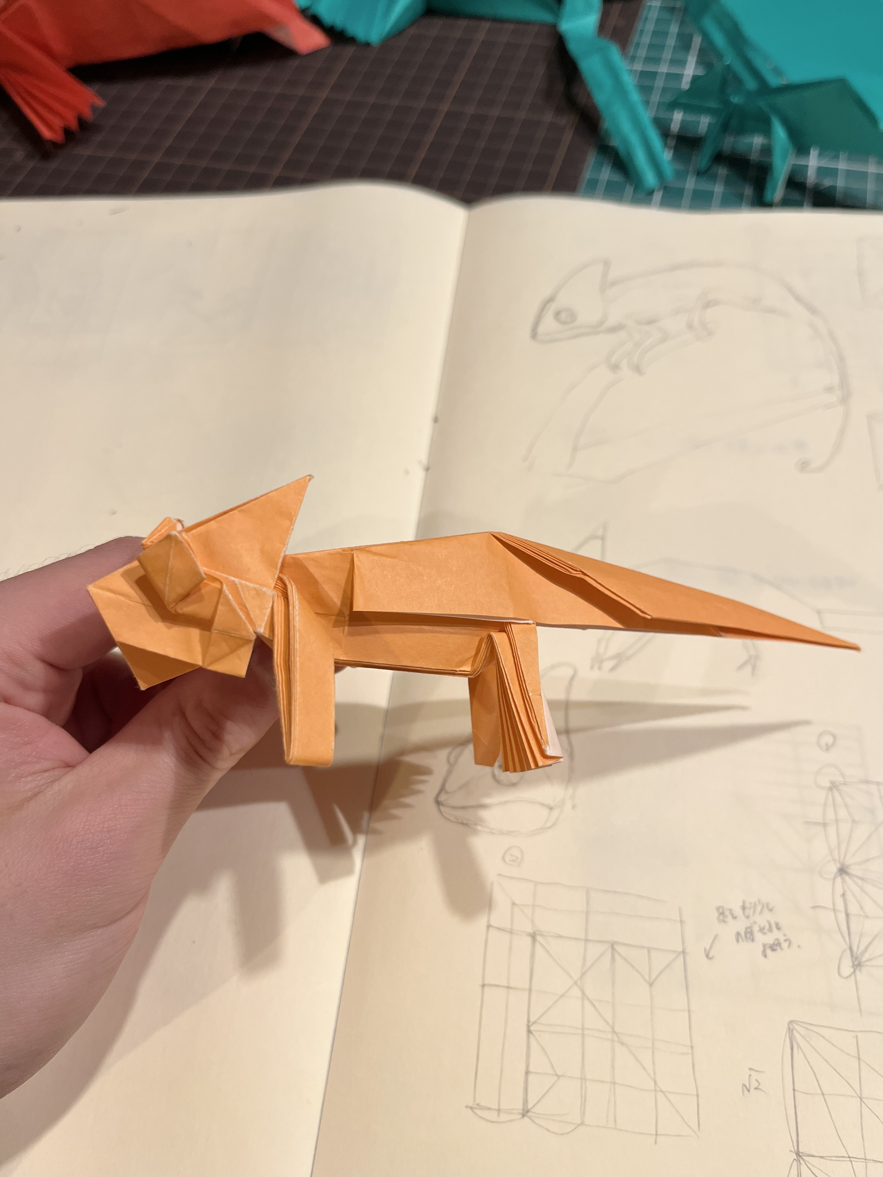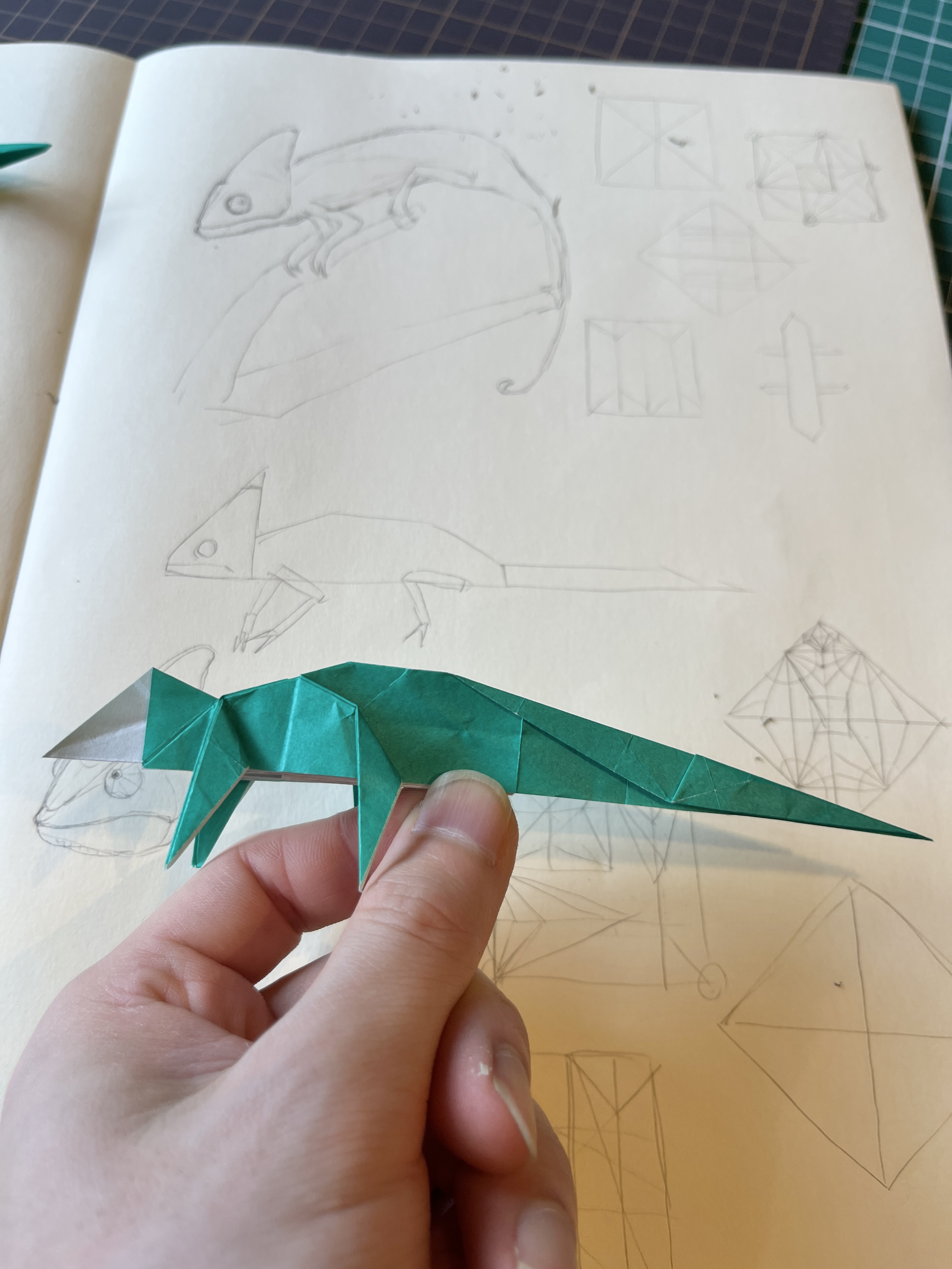 First, I deepen my understanding of the chameleon’s shape and body structure by looking up images from various angles and watching videos of it moving. (For animals, I recommend slow-motion videos posted by National Geographic on platforms like TikTok.) After that, I make sketches and work out the rough proportions of each body part.