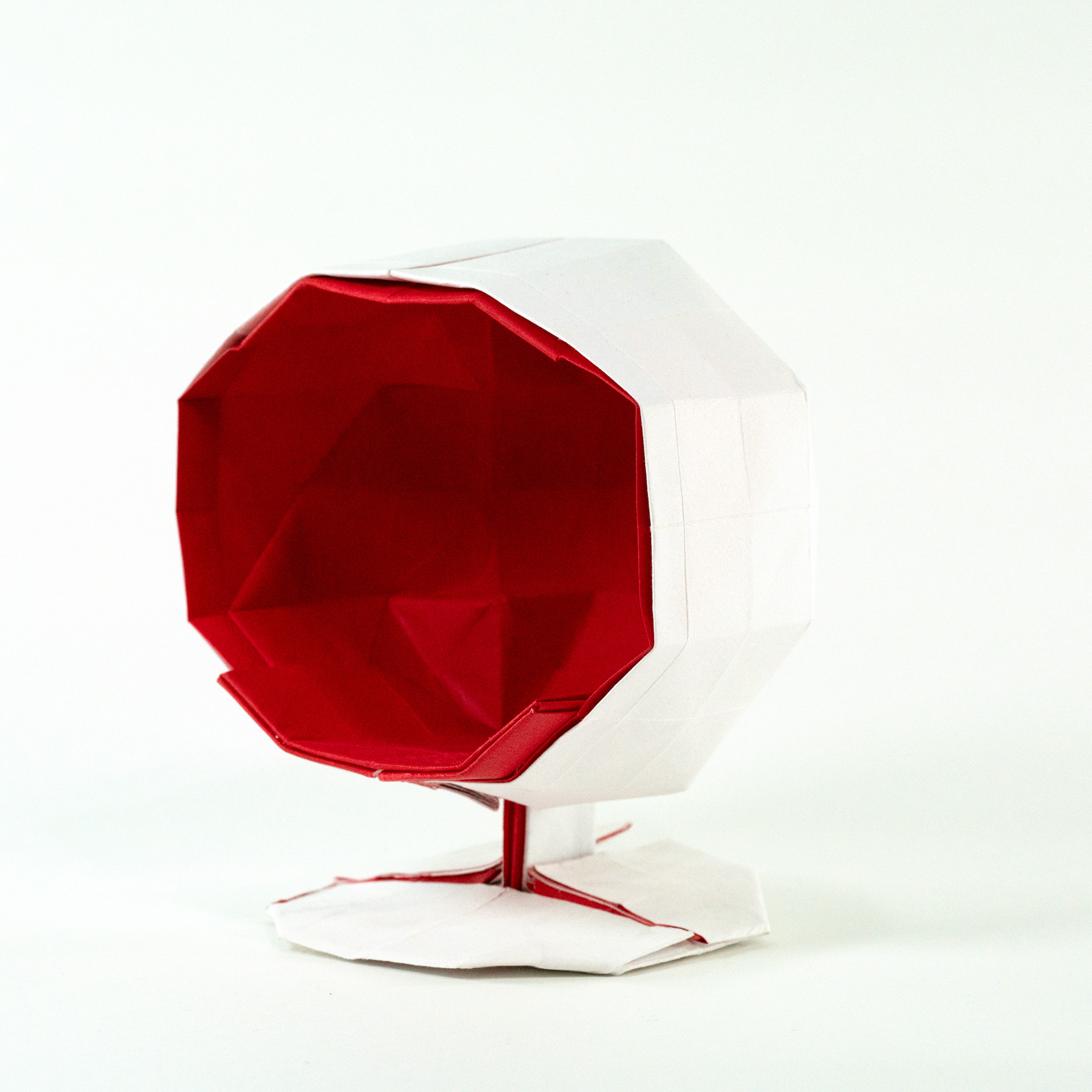 A mid-century Tulip chair, with the seat rendered in red using an inside-out design.