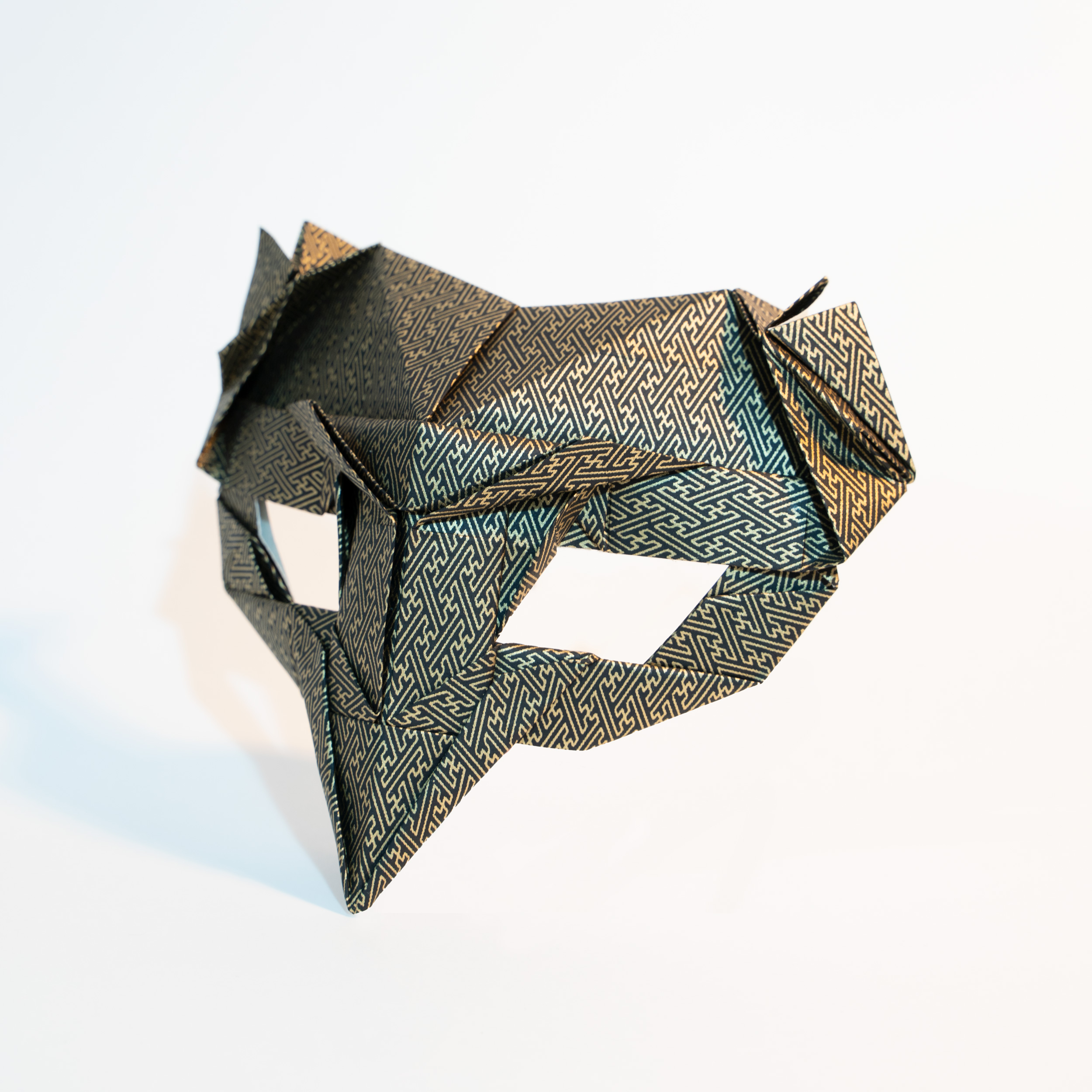 A mask with a mechanical, intricate form