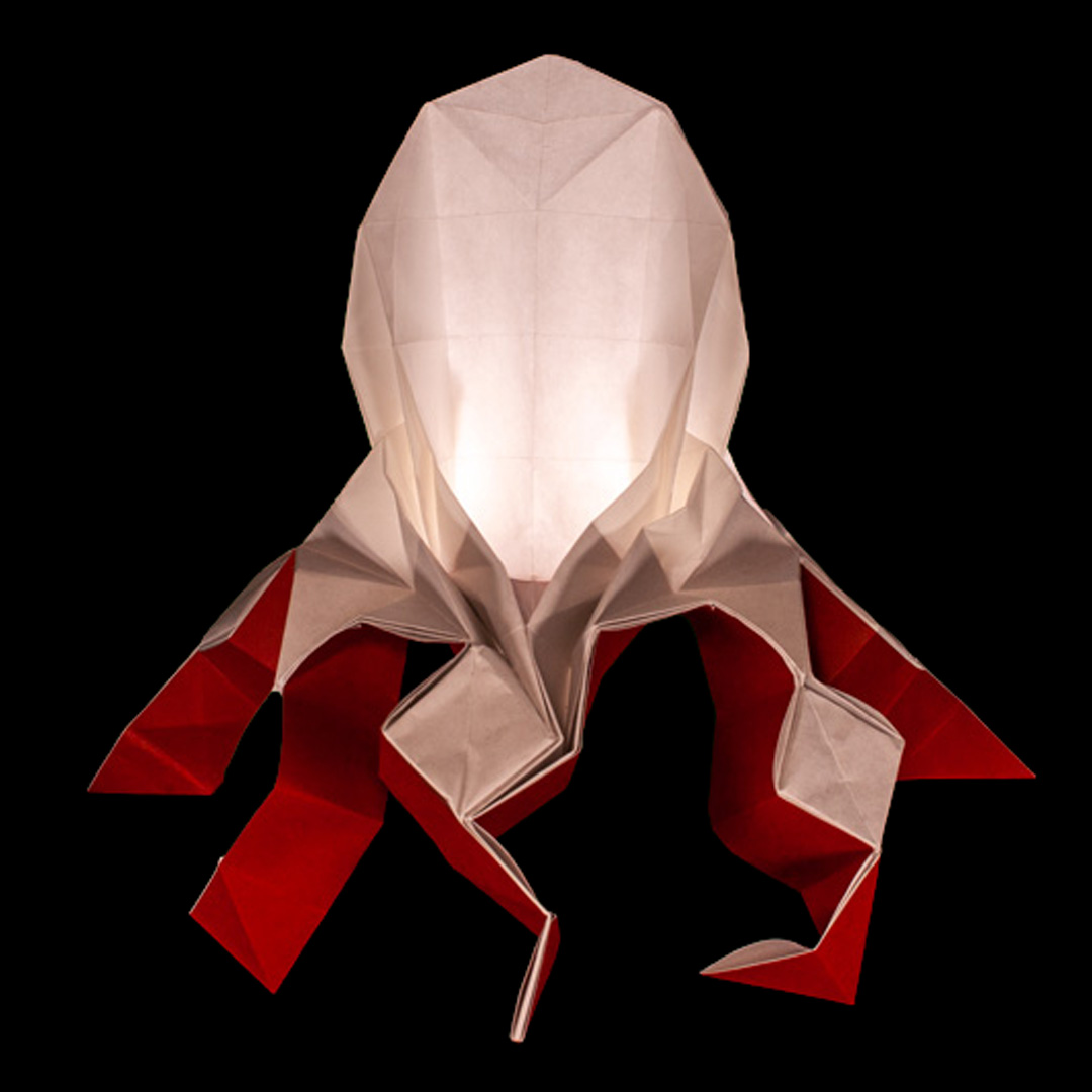A lampshade in the shape of an octopus.
