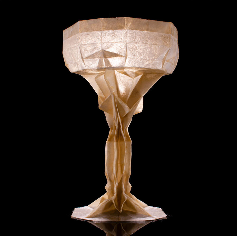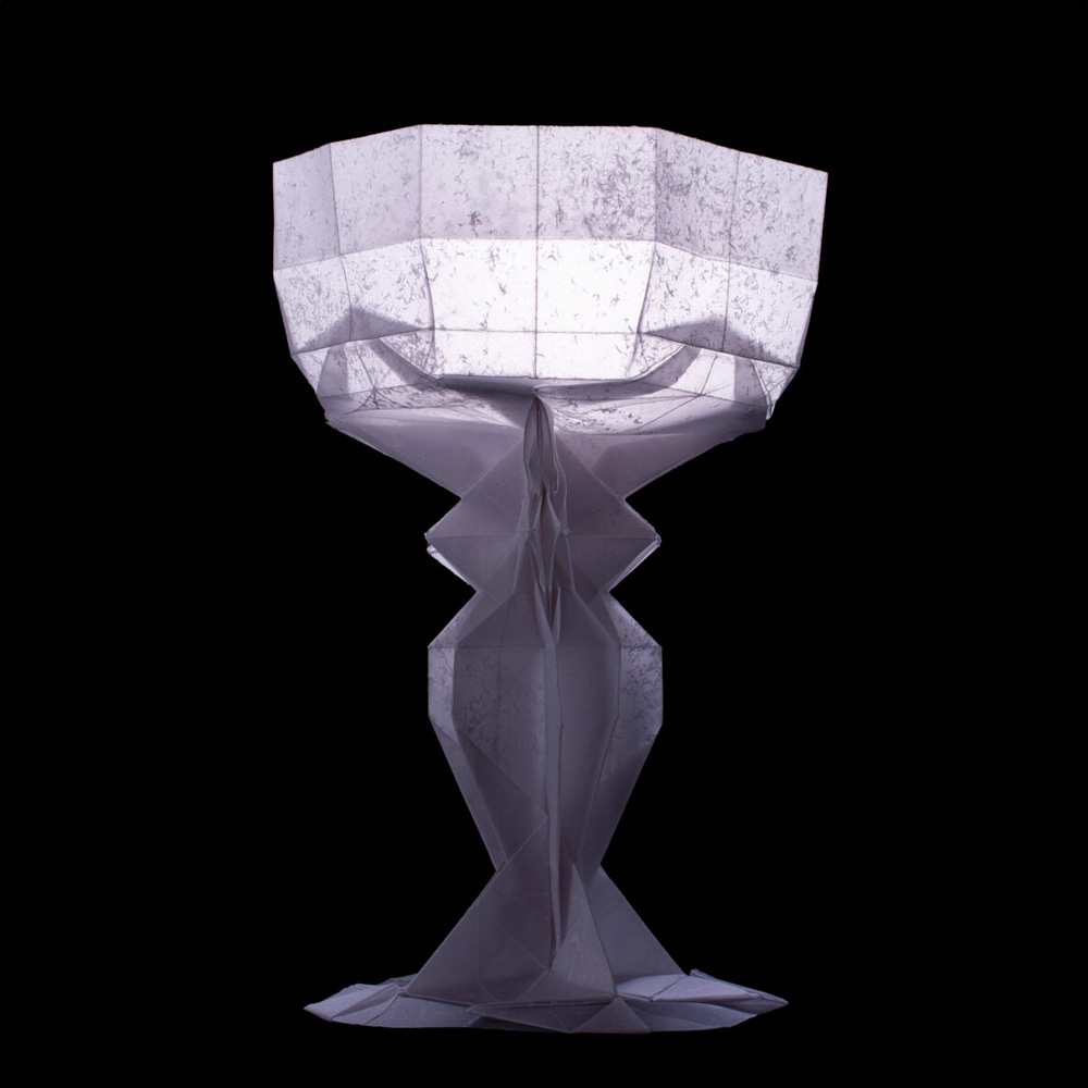 A three-dimensional light bulb. When held up to the light, the filament inside is visible.