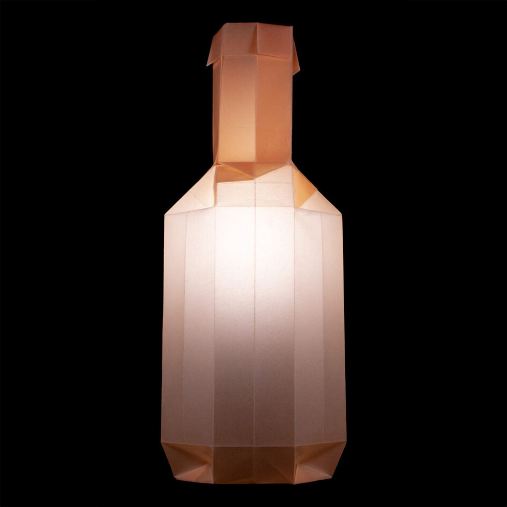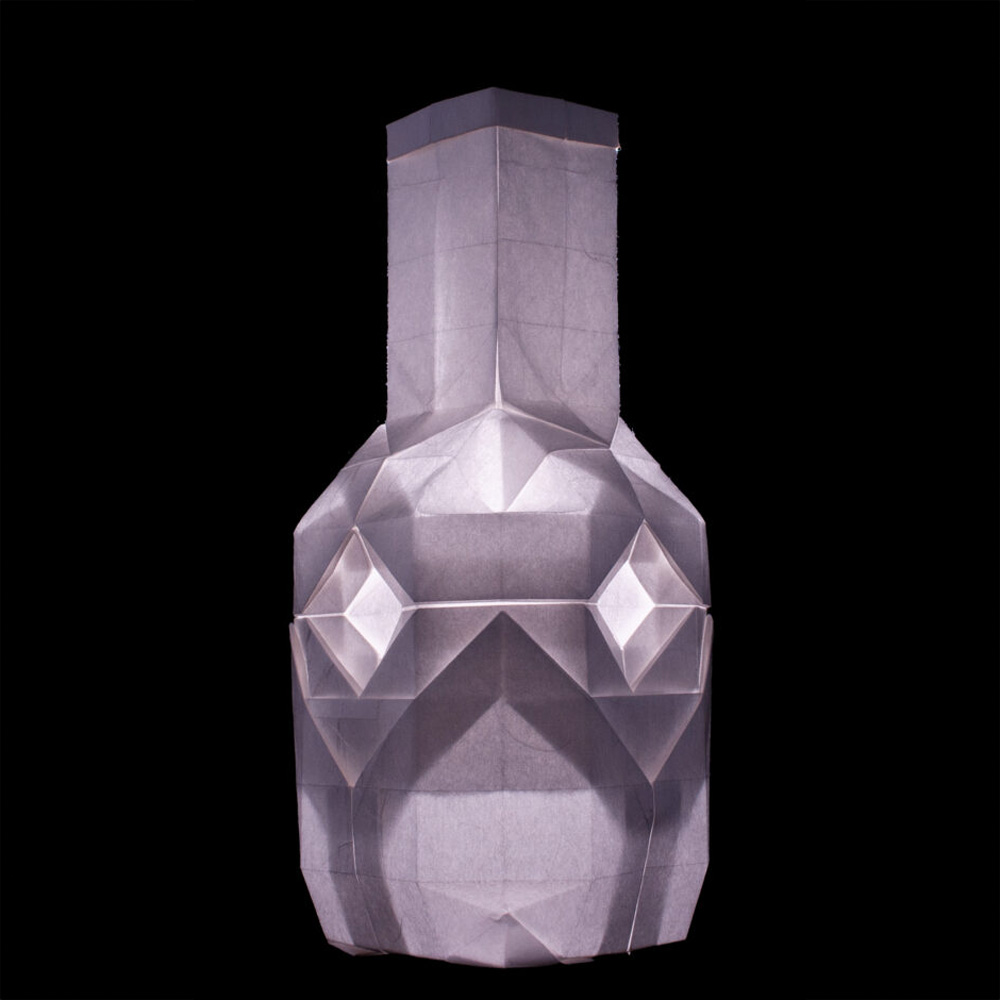 A three-dimensional, low-poly wine bottle form.