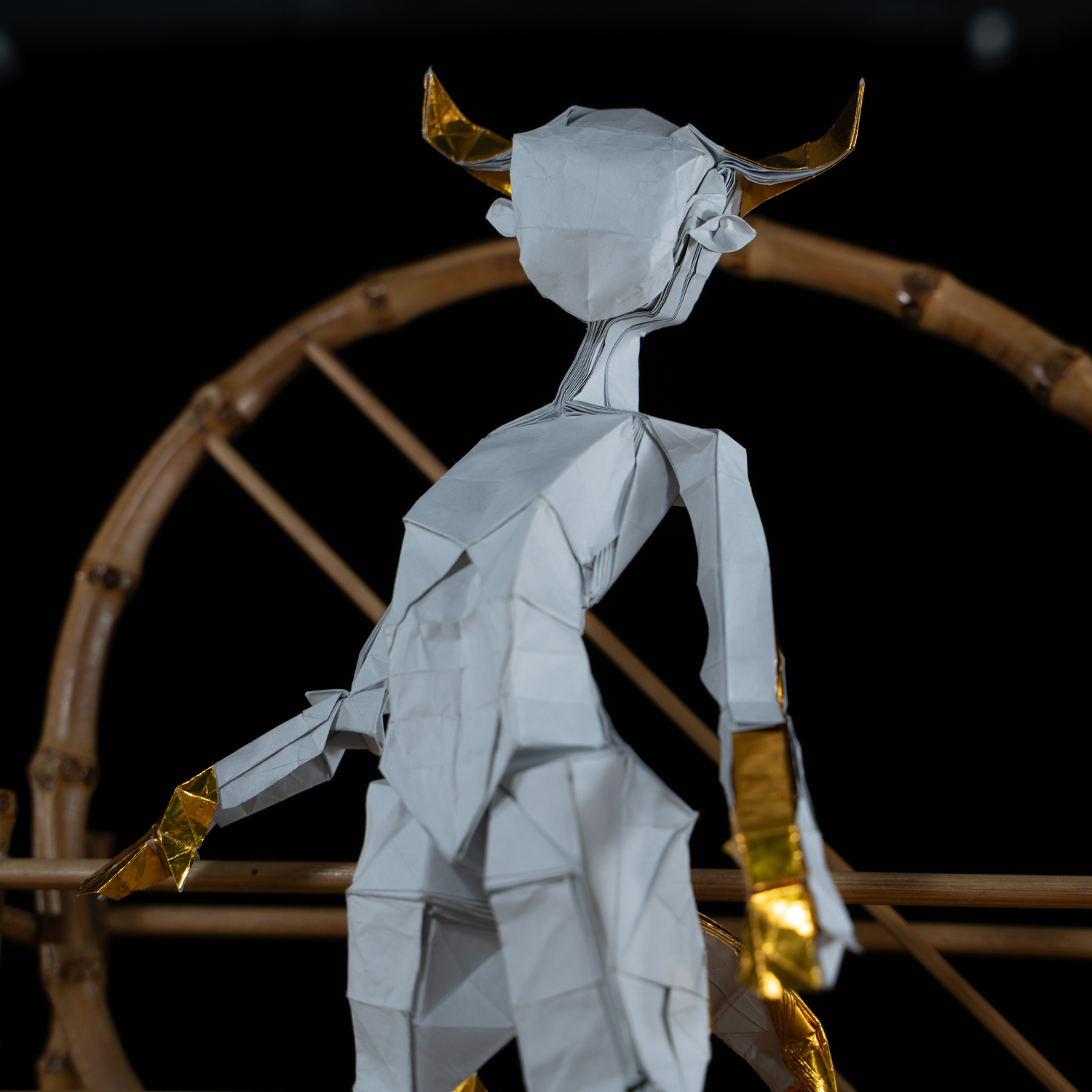 initial design of an origami girl ( gold, 32 grid )